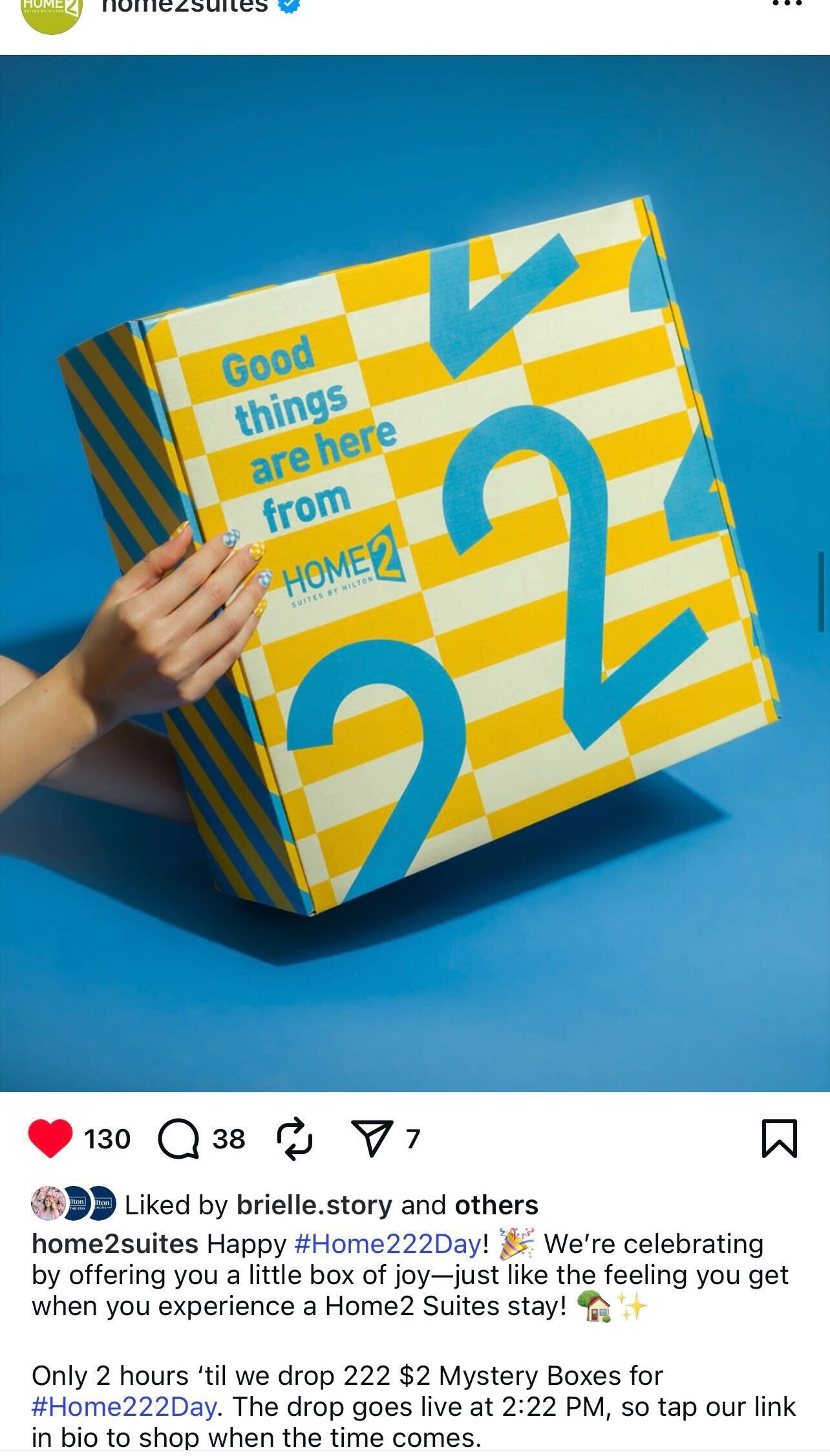 Hundreds of users shared their boxes organically and tagged the brand, giving Home2 Suites a wave of authentic UGC to reshare on their channels.